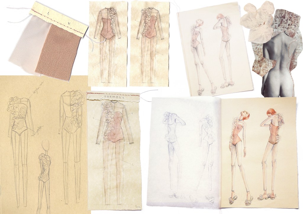 Dermos es una colección cuya inspiración parte de la piel, y de la relación de la vestimenta con el ser humano, la cual ocupa el lugar de segunda piel sirviéndonos para expresarnos, definirnos, y dar valor cultural y antropológico.