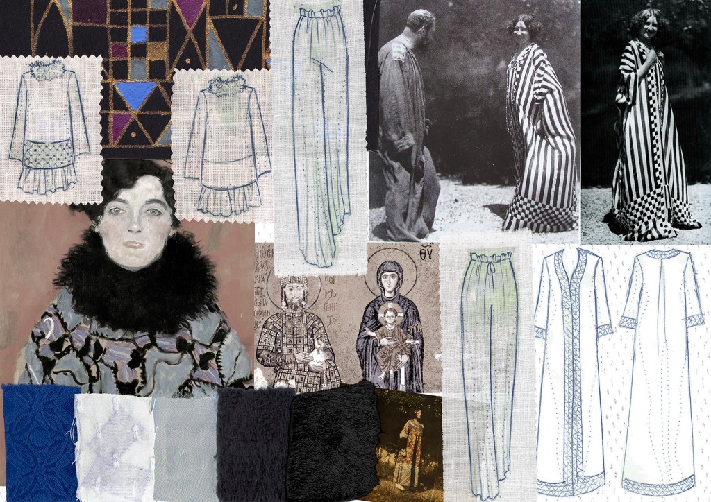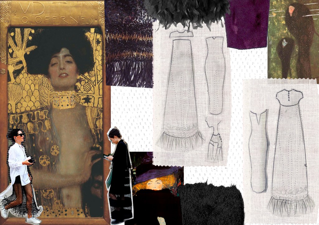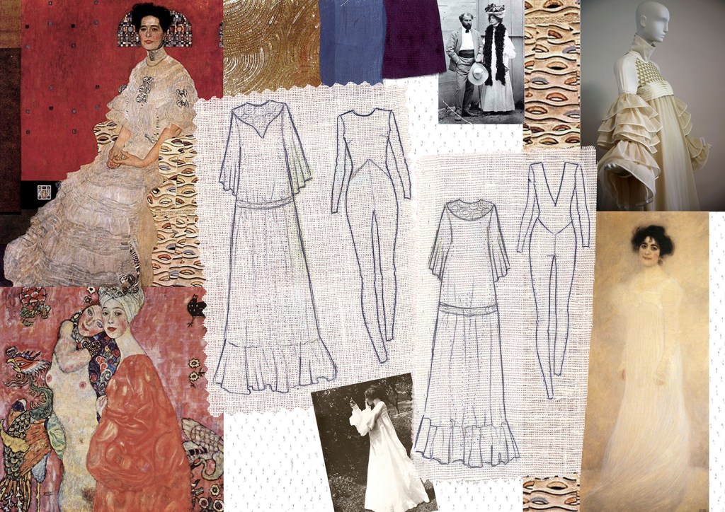This collection is inspired by the relationship between the Austrian painter Gustav Klimt and his friend and life partner Emilie Flöge. Klimt was a renowned painter of Modern Viennese Art of the late Nineteenth Century, while Flöge was a Viennese dressmaker. Klimt was inspired by Emilie’s dresses and even used her as his model in his paintings. Flöge relied on Klimt to help her design many of her costumes. This could be considered the first symbiotic relationship between art and fashion in history.